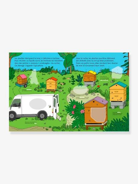Comment la ruche est-elle aménagée ? Y a-t-il des ruches en ville ? Comment les abeilles s’organisent-elles entre elles ? Que font les ouvrières ? D’où vient la reine ? Quel est le travail de l’apiculteur ?… De la pollinisation à la récolte du miel : pour tout savoir sur ces insectes indispensables à la vie sur Terre. Un « Doc à coller » sous une forme interactive et ludique, qui valorise la participation de l’enfant, tout en lui apportant des informations. Un concept simple et efficace : donner à découvrir aux petits leurs premiers savoirs documentaires en positionnant des autocollants sur de grandes images.