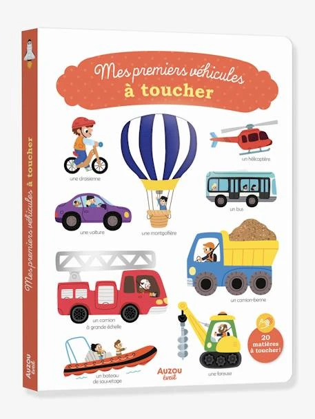 Plus de 20 matières à toucher qui permettent aux petits d’appréhender une nouvelle dimension des objets et mots présentés. Le sens tactile facilite l’appropriation du nouveau vocabulaire et sa mémorisation. Pointer, nommer, enrichir son vocabulaire et développer son sens tactile : un livre d’éveil à manipuler d’abord avec le parent accompagnateur, puis tout seul. Thématiques : En ville- Au parc-Transports à rails-Dans les airs-Sur et sous l’eau-Au chantier-Véhicules d’urgence-Sur la route des vacances Imaginaires